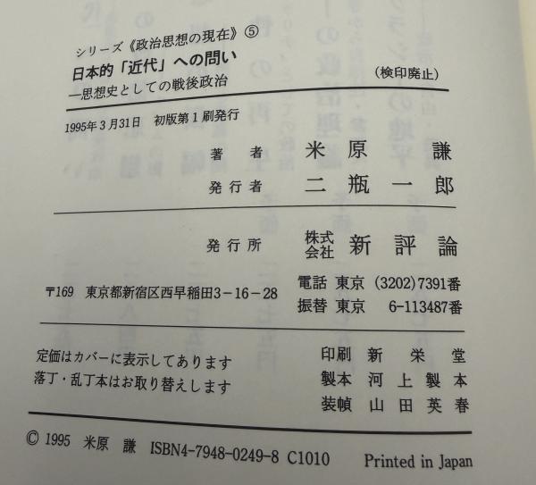 日本的「近代」への問い : 思想史としての戦後政治 <シリーズ<政治思想の現在> 5> 初版1刷