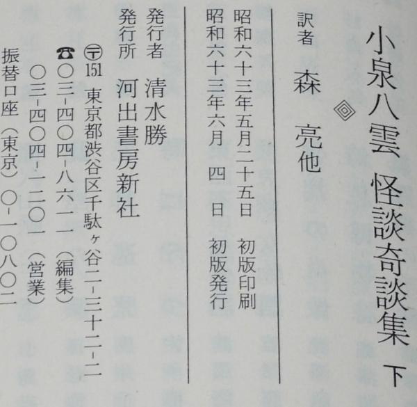 • 解説 小泉八雲 怪談奇談集(下) 河出文庫 昭和63年6月初版