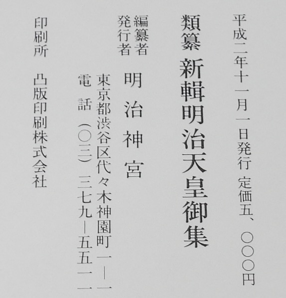 • 解説 類纂 新輯明治天皇御集 明治神宮 平成2年11月発行 B6判ハードカバー箱入.