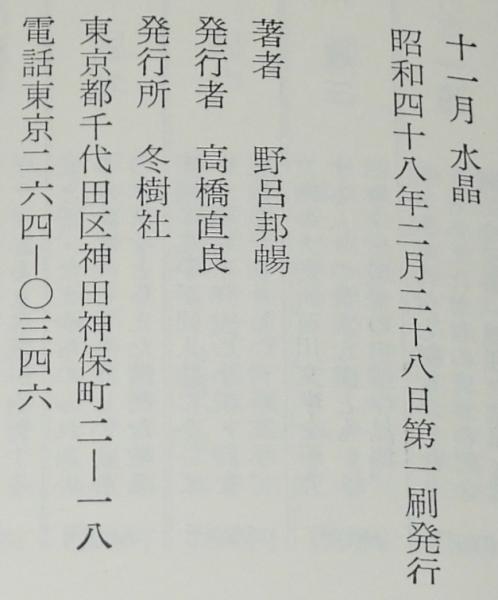• 解説 十一月 水晶 野呂邦暢 冬樹社 昭和48年2月第1刷 四六判ハードカバー箱帯付.