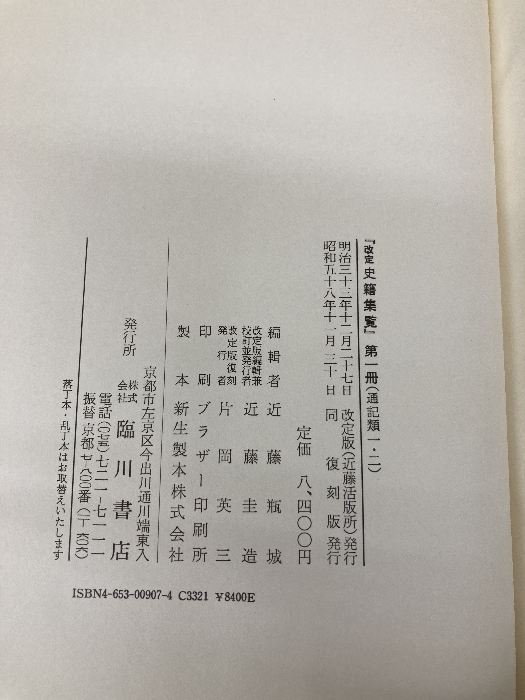 改定史籍集覧 第1冊 復刻版 臨川書店