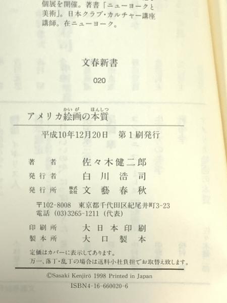 アメリカ絵画の本質 (文春新書 20) 文藝春秋 佐々木 健二郎