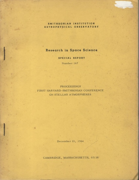 Proceedings First Harvard-Smithsonian Conference on Stellar Atmospheres 23732 (英) ハーバード・スミソニアン天体物理観測所 恒星大気に関する会議 <Research in Space Science / SAO Special Report No.167>