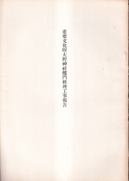 重要文化財 大野神社楼門修理工事報告書 <国宝・重要文化財建造物保存修理工事報告書>