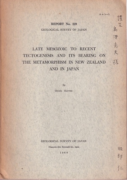Late Mesozoic to Recent Tectogenesis and Its Bearing on the Metamorphism in New Zealand and in Japan (英) ニュージーランドにおける後期中生代-現世の造構運動とその変成作用に及ぼす意義,および日本における場合 <Report No.229 (地質調査所報告 229号)>