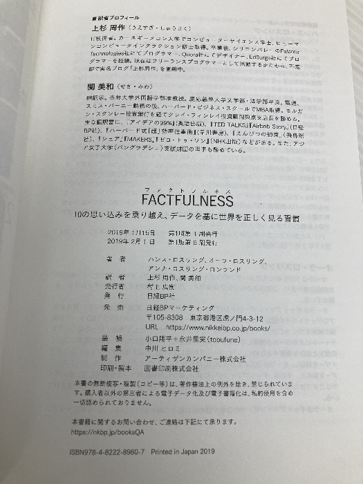【※カバー無し】FACTFULNESS(ファクトフルネス) 10の思い込みを乗り越え、データを基に世界を正しく見る習慣 日経BP アンナ・ロスリング・ロンランド