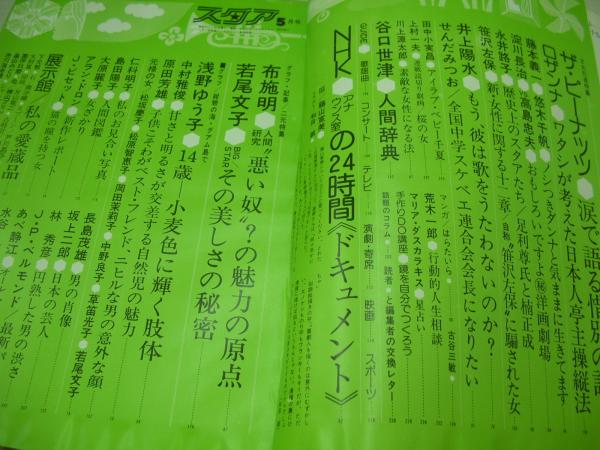 The STAR スタア 1975年05月号 平凡社 松坂慶子 表紙 大原麗子・巻頭グラビア 中村雅俊 若尾文子 松坂慶子 松原智恵子 岡田茉莉子 中野良子 草笛光子 水谷豊 ジャクリーンビセット 浅野ゆう子 布施明 仁科明子・巻中3折りピンナップ 島田陽子 あべ静江 若尾文子 さようならザ・ピーナッツ(記事) 原田芳雄 上村一夫/桜の女 悠木千帆×藤本義一(対談記事) ※画像の様に表紙面下部に波皺出ています。