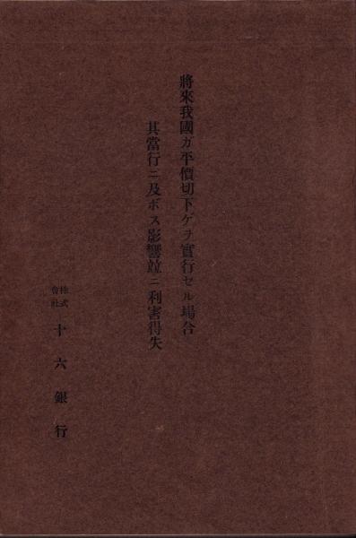 (十六銀行)将来我国ガ平価切下ゲヲ実行セル場合其当行ニ及ボス影響竝ニ利害得失(岐阜県)