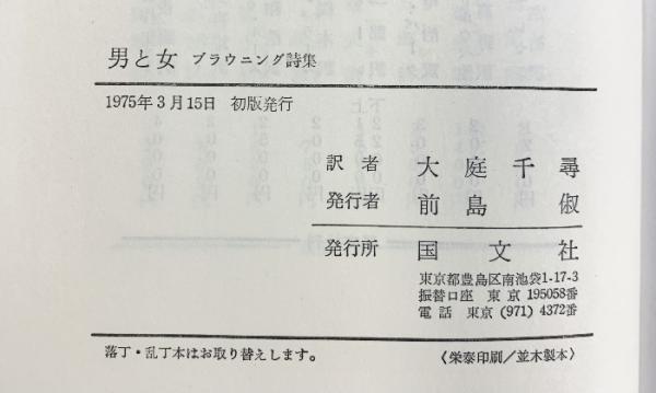 ブラウニング・男と女 国文社 (ブラウニング詩集)大庭千尋:訳 1975年初版