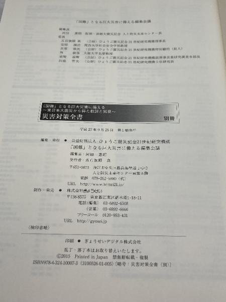「国難」となる巨大災害に備える 災害対策全書 〔別冊〕 ぎょうせい ひょうご震災記念21世紀研究機構