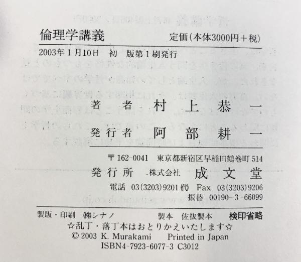 倫理学講義 成文堂 村上恭一:著 2003年
