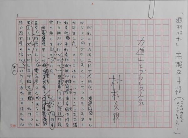 村松友視自筆草稿『力道山とプロレス人気』
