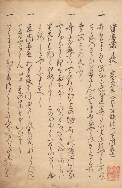 • 解説 寛文六年八月十二日候彼門下所様也 中本