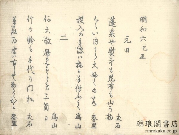 明和六巳?歳旦 千載堂除元集