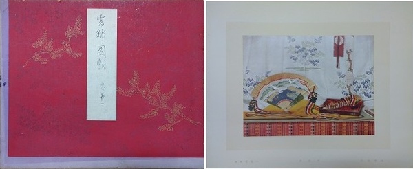 • 解説 4冊組 帙(傷み大、壊れ) 31葉(1巻10葉/2巻7葉/3巻7葉/4巻7葉)の内、2巻の第9図「几帳のかげ」欠の30図 各巻解説付 A3判 ※蔵印あり