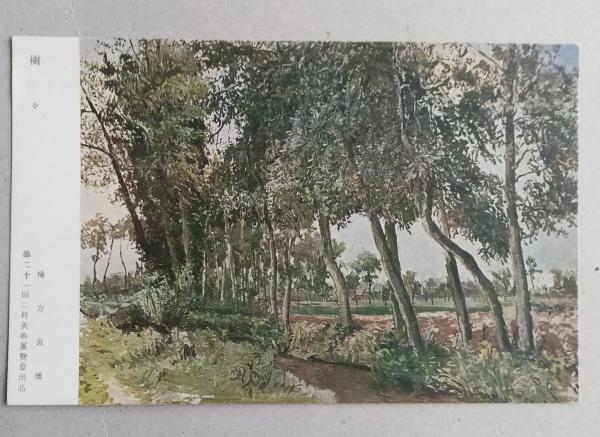 絵葉書 彩色 棟方寅雄 樹々 第21回二科美術展覧会出品