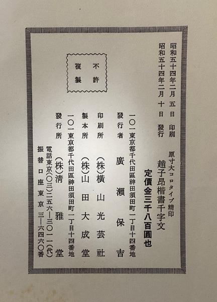 趙子昂楷書千字文 原寸大コロタイプ精印