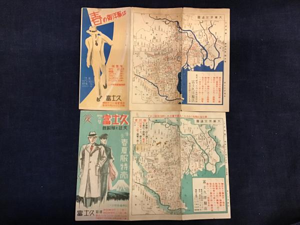神田九段下・富士久洋服店 図付き宣伝紙 1933(昭和8)年、1941(昭和16)年 2枚一括 【2枚とも図:大東京交通図/東京市電車案内図】