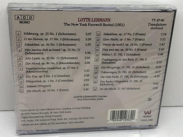 未開封CD ロッテ・レーマン(Lotte Lehmann) The New York Farewell Recital1951 VAI Audio盤