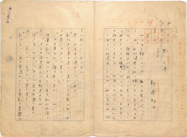 • 解説 『若い人達』 ペン書 400字詰原稿用紙3枚完 新居好子は新居格の娘。「オール女性」掲載。(種別)随筆 #八木書店近代自筆物/1.草稿類 #95号近代文学特輯 95807449 ※自筆物につきましては、毎月25日前後に新蒐品を追加しております。PDF形式で御覧になりたい方は https://company.books-yagi.co.jp/archives/news/10928 を参照ください。