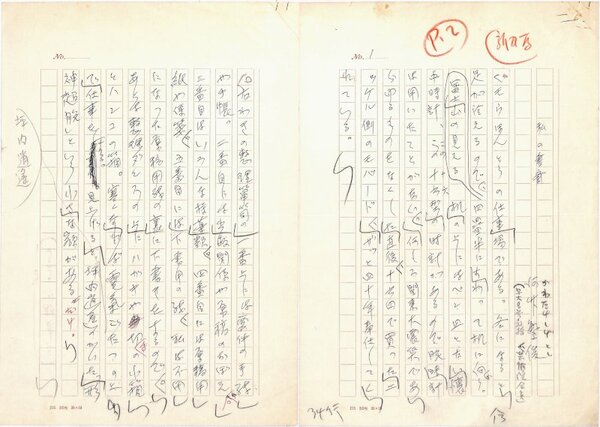 • 解説 『私の書斎』 ペン書 200字詰原稿用紙2枚完 「新かな」指定がある。当時流行した文人の書斎紹介。(種別)随筆 #八木書店近代自筆物/1.草稿類 #95号近代文学特輯 95607229 ※自筆物につきましては、毎月25日前後に新蒐品を追加しております。PDF形式で御覧になりたい方は https://company.books-yagi.co.jp/archives/news/10928 を参照ください。