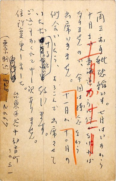 • 解説 池田時雄宛 ペン書 10行 昭38・6・25(消印) 速達 中折 テープ跡 例会欠席の知らせ。「七月はじめから十月まで北海道のほうに行かなければなりませんので、今回は残念ながら出席できません」。(発信地)谷中初音(受信地)京浜詩の会 #八木書店近代自筆物/3.葉書類 #95号近代文学特輯 95704988 ※自筆物につきましては、毎月25日前後に新蒐品を追加しております。PDF形式で御覧になりたい方は https://company.books-yagi.co.jp/archives/news/10928 を参照ください。