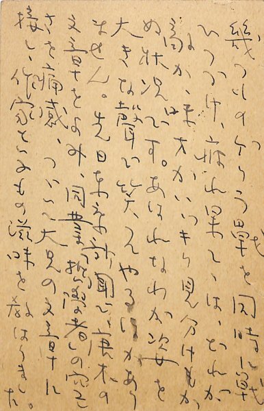• 解説 青山光二宛 ペン書 9行 昭38・3・12(消印) 近況報告。「幾つものゲリラ戰を同時に戰ひつづけ、疲れ果てゝは、どれが敵か、味方かハッキリ見分けも(つ)かぬ状態です」。(発信地)世田谷区砧町(受信地)北多摩狛江町 #八木書店近代自筆物/3.葉書類 #95号近代文学特輯 95308139 ※自筆物につきましては、毎月25日前後に新蒐品を追加しております。PDF形式で御覧になりたい方は https://company.books-yagi.co.jp/archives/news/10928 を参照ください。