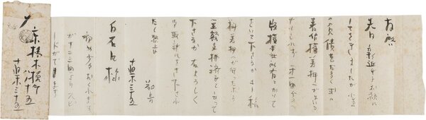 • 解説 大阪朝日新聞社宛 毛筆 巻紙18行 封筒付 昭7・2・17(消印) 速達 しみ 差し押さえ対策。「小生の負債甚だ多く或は著作権差押へがはいるやもしれず第一回分のへ?版権本社所有とかいてをいて下さるかもし稿料差押へが行ったなら全額支拂済みと云って下さるか右よろしく御取計ひをき下されたく願上候」。(発信地)京橋木挽町(受信地)大阪朝日新聞社 #八木書店近代自筆物/2.書簡類 #95号近代文学特輯 95908539 ※自筆物につきましては、毎月25日前後に新蒐品を追加しております。PDF形式で御覧になりたい方は https://company.books-yagi.co.jp/archives/news/10928 を参照ください。