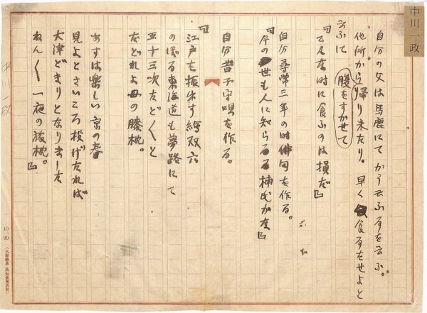• 解説 『狸老一口噺』途中 ペン書 400字詰原稿用紙1枚未完 署名欠 裁断 「文藝春秋」(3巻6号・大正14年6月号)掲載。(種別)笑話 #八木書店近代自筆物/1.草稿類 #95号近代文学特輯 95111630 ※自筆物につきましては、毎月25日前後に新蒐品を追加しております。PDF形式で御覧になりたい方は https://company.books-yagi.co.jp/archives/news/10928 を参照ください。