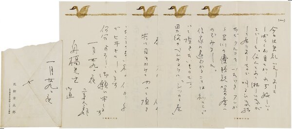 • 解説 舟橋聖一宛 ペン書 便箋4枚30行 封筒付 昭32・1・30(消印) 及川が十両優勝した際の祝賀パーティーに呼ばれた模様。また体調すぐれず、やや疎遠な関係になっていたか。「作家に遠ざかることは私にとって何よりのさびし味です。新派が疎遠になったことはイケナイことだと思います」。(発信地)臺東区柳橋(受信地)新宿区下落合 #八木書店近代自筆物/2.書簡類 #95号近代文学特輯 95708999 ※自筆物につきましては、毎月25日前後に新蒐品を追加しております。PDF形式で御覧になりたい方は https://company.books-yagi.co.jp/archives/news/10928 を参照ください。