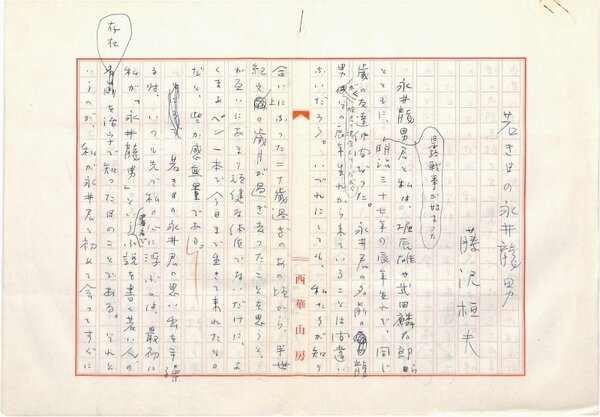 • 解説 『若き日の永井龍男』 ペン書 400字詰自家用箋7枚完 「永井龍男全集2巻月報」(講談社・昭56)掲載。(種別)回想 #八木書店近代自筆物/1.草稿類 #95号近代文学特輯 95105189 ※自筆物につきましては、毎月25日前後に新蒐品を追加しております。PDF形式で御覧になりたい方は https://company.books-yagi.co.jp/archives/news/10928 を参照ください。