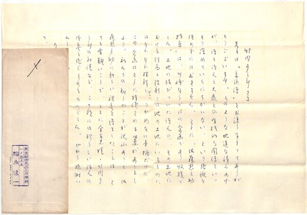 • 解説 竹内多三郎宛 ペン書 原稿用紙2枚27行 封筒付 昭40・11・22(消印) 献本礼状。「"佐藤惣之助特集"は、川崎ならではの企画であり収穫でした。土地に結びついた詩人の、その土地における行為と役割には他の土地にいるものにはなかなか理解したがく、つかめない事柄だけに、この企画はさらに持続される必要があるでしょう」。(発信地)上石神井(受信地)川崎市大島町 #八木書店近代自筆物/2.書簡類 #95号近代文学特輯 95504638 ※自筆物につきましては、毎月25日前後に新蒐品を追加しております。PDF形式で御覧になりたい方は https://company.books-yagi.co.jp/archives/news/10928 を参照ください。