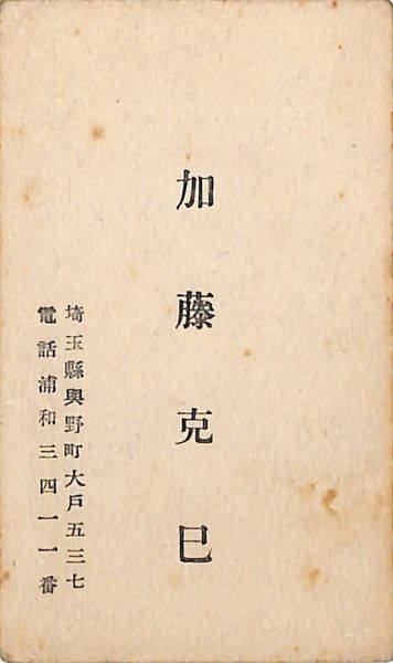 加藤克巳名刺(印刷)