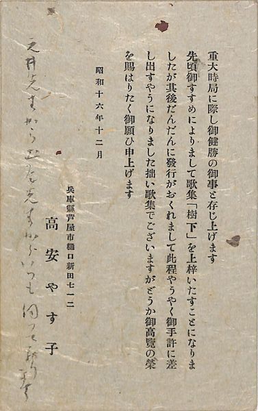 高安やす子葉書(印刷・ペン/告知)