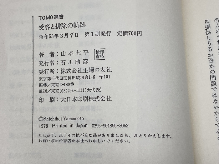 受容と排除の軌跡 Tomo選書 山本七平 主婦の友社
