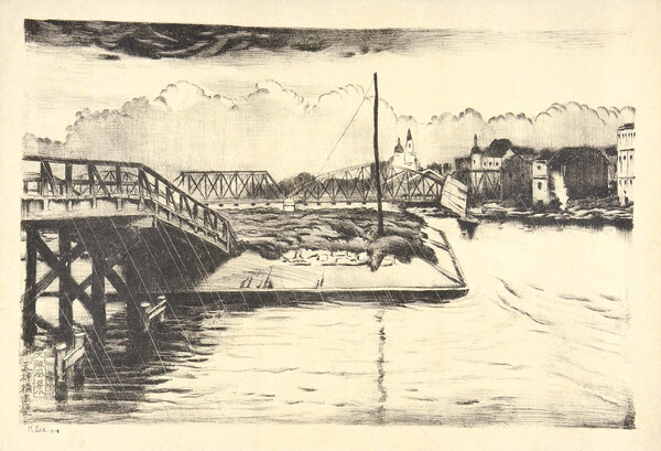 • 解説 石版29.5×45cm(イメージサイズ)1枚裏打 ※大阪風景:石版画家・織田一麿の代表的な版画集。東京風景と並び20図を制作。大阪特有の美観を描写し後年に伝えるために、より実感的に描かれている。