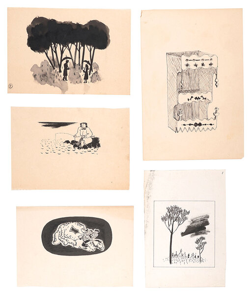• 解説 紙 墨 ペン 彩色14.5×7.5~40×33cm(シートサイズ)21枚一部シミ・傷ミ