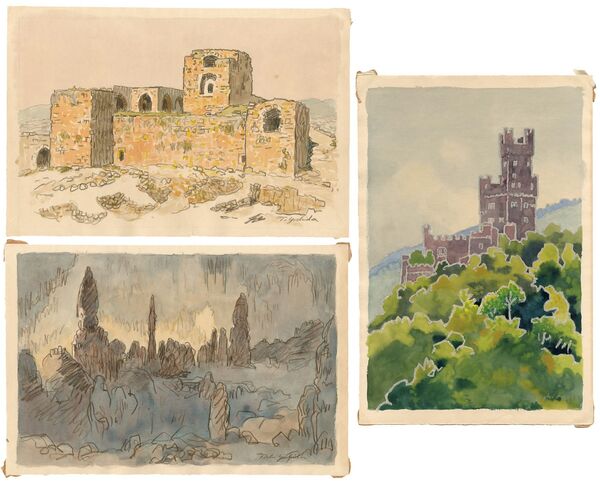 • 解説 水彩 紙 サイン各27×41cm(シートサイズ)3枚少ヤケ 裏面角にテープ跡