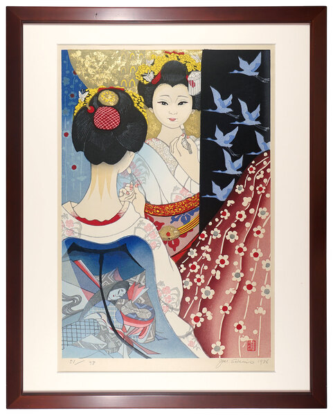 • 解説 木版 70x47cm(イメージサイズ) / 91.5x73cm(額サイズ)ed.98額装 1面Frame マットヤケ マージン右上角少傷ミ