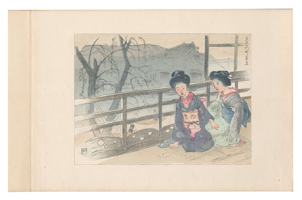• 解説 木版 各約17x23cm(イメージサイズ)/24.2x34.4cm(画帖サイズ)1冊シミ 少ヤケ 少汚レ 一部シワ 全50図 画帖仕立 短歌:与謝野晶子/与謝野鉄幹 序:石井柏亭/三宅克己 京都御所/祇園/三條大橋/清水/嵐山/高雄/東本願寺/文楽/高津舞台/宗右衛門町/天王寺/道頓堀/新戎橋/宇治平等院/猿沢池/奈良公園/春日社頭/春日舞楽/南円堂/大仏/東大寺塔中/春日高円/奈良郊外ノ一/奈良郊外ノ二/奈良郊外ノ三/唐招提寺/法起寺/夢殿/法隆寺/龍田/神武御陵/吉野大田渡/吉野川/吉野/初瀬回廊/壺阪口/和歌浦ヨリ紀三井寺/須磨村雨松風堂/須磨寺/尾道千光寺/宮島/天之橋立/甲州山中湖/東海道知立/名古屋城/草津附近/草津ヨリ三上山/房総国境/国技館/碓氷ヨリ軽井沢