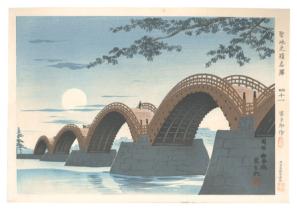 聖地史蹟名勝 四一 周防錦帯橋月之出 Holy Historical Sites / No. 41: Moonrise of Suou Kintai Bridge