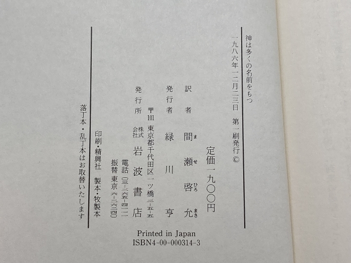 神は多くの名前をもつ: 新しい宗教的多元論 岩波書店 J. ヒック