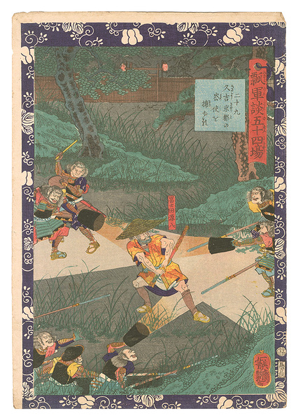 瓢軍談五十四場 二十九 久吉京都の密使を捕ゆる Fifty-four Scenes from the Story of Hideyoshi / No. 29: Hisayoshi Captures a Spy from Kyoto