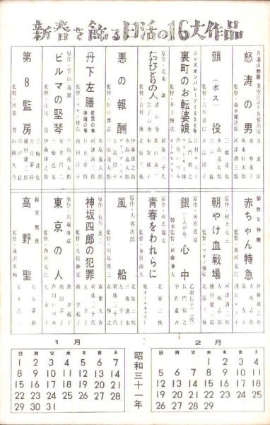 • 著者 裏面・新春を飾る日活の16大作品、昭和31年1・2月カレンダー