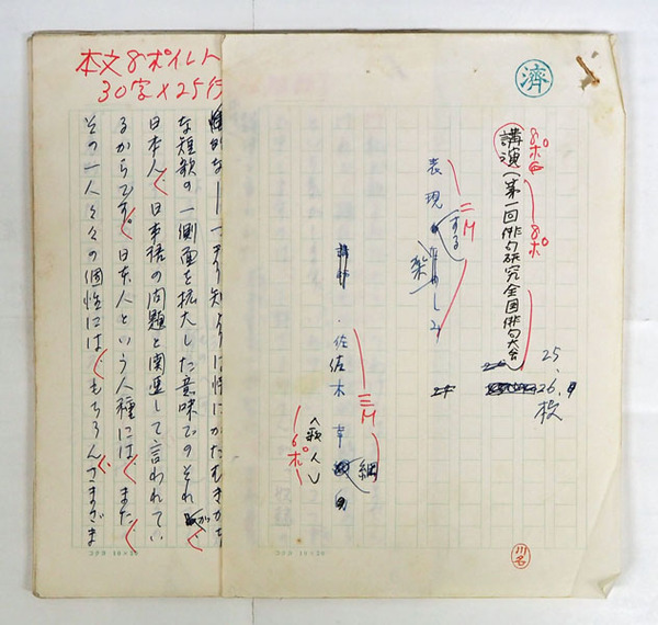 佐佐木幸綱草稿 講演原稿(第一回俳句研究全国俳句大会)『表現する楽しみ』 ペン書二百字詰51枚完