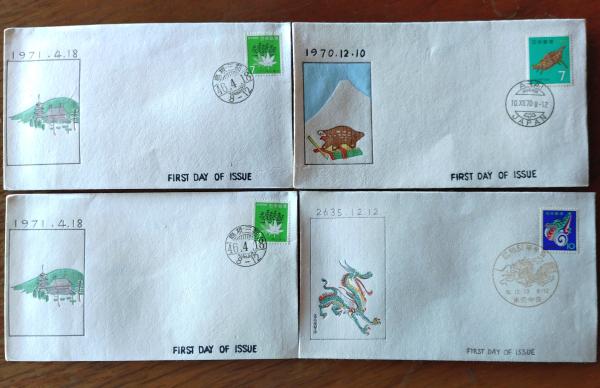 • 解説 D26030001〇彩色木版画 初日カバー4枚 イノシシ 龍 国土緑化 2枚 茨城石岡高浜 広瀬栄一 昭和年代〇和本古書古文書