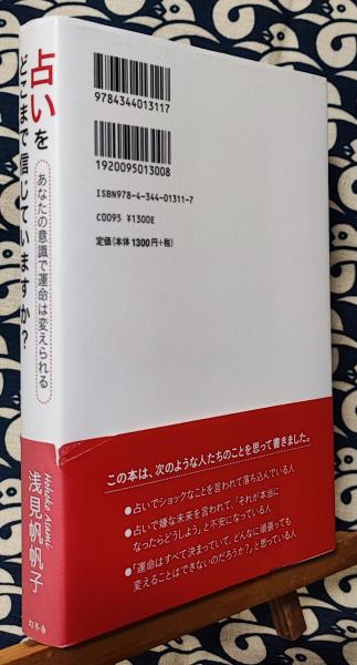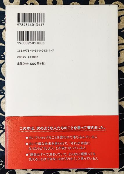 【内容説明】 スピリチュアルな世界、見えない世界と上手につき合う考え方。 目次 【序章】占い師の言葉で未来が左右される恐ろしさ 【第1章】占い師にこんなことを言われたとしても大丈夫!!―占いでわかる未来は絶対と決まっているものではない 【第2章】占いで、あなたの本音や進路を変えるのですか?―迷ったら、こうすればいい 【第3章】未来は変えられる 【第4章】良い占い師の選び方―こういう占い師に聞かなければ意味がない 【第5章】占いを聞くのであれば、こういうふうに活用しよう 【第6章】運命はどこまで決まっているのか? 【最終章】やっぱりこれが大切―どんな教えでも悟りの本でも、結局ここに戻ってくる 【著者等紹介】 浅見帆帆子[アサミホホコ] 1977年東京生まれ。青山学院大学国際政治経済学部卒業後、ロンドンに留学。帰国後執筆活動に入る。海外でも翻訳されるなど、幅広い読者の絶大な支持を受けている