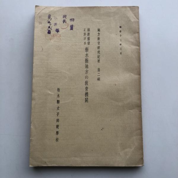 維新前後に於ける栃木縣地方の教育機関 地方教育研究紀要 第二輯(栃木縣女子師範学校・昭和13年)詳細は目次画像参照