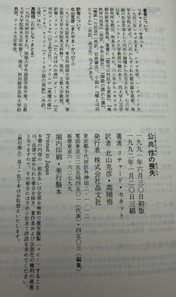 • 著者 リチャード・セネット 著 ; 北山克彦, 高階悟 訳