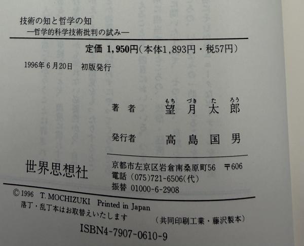 技術の知と哲学の知 : 哲学的科学技術批判の試み <Sekaishiso seminar> 初版